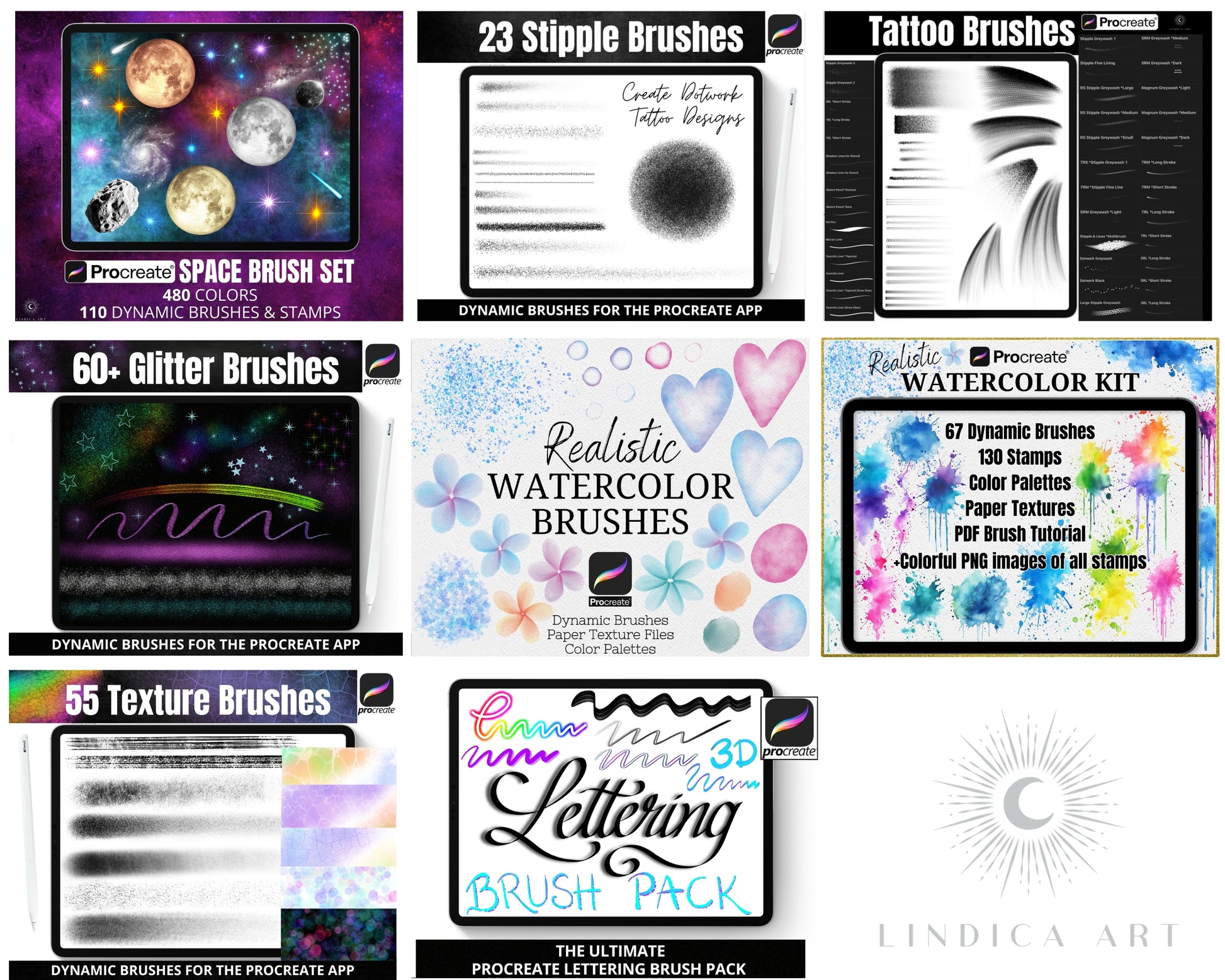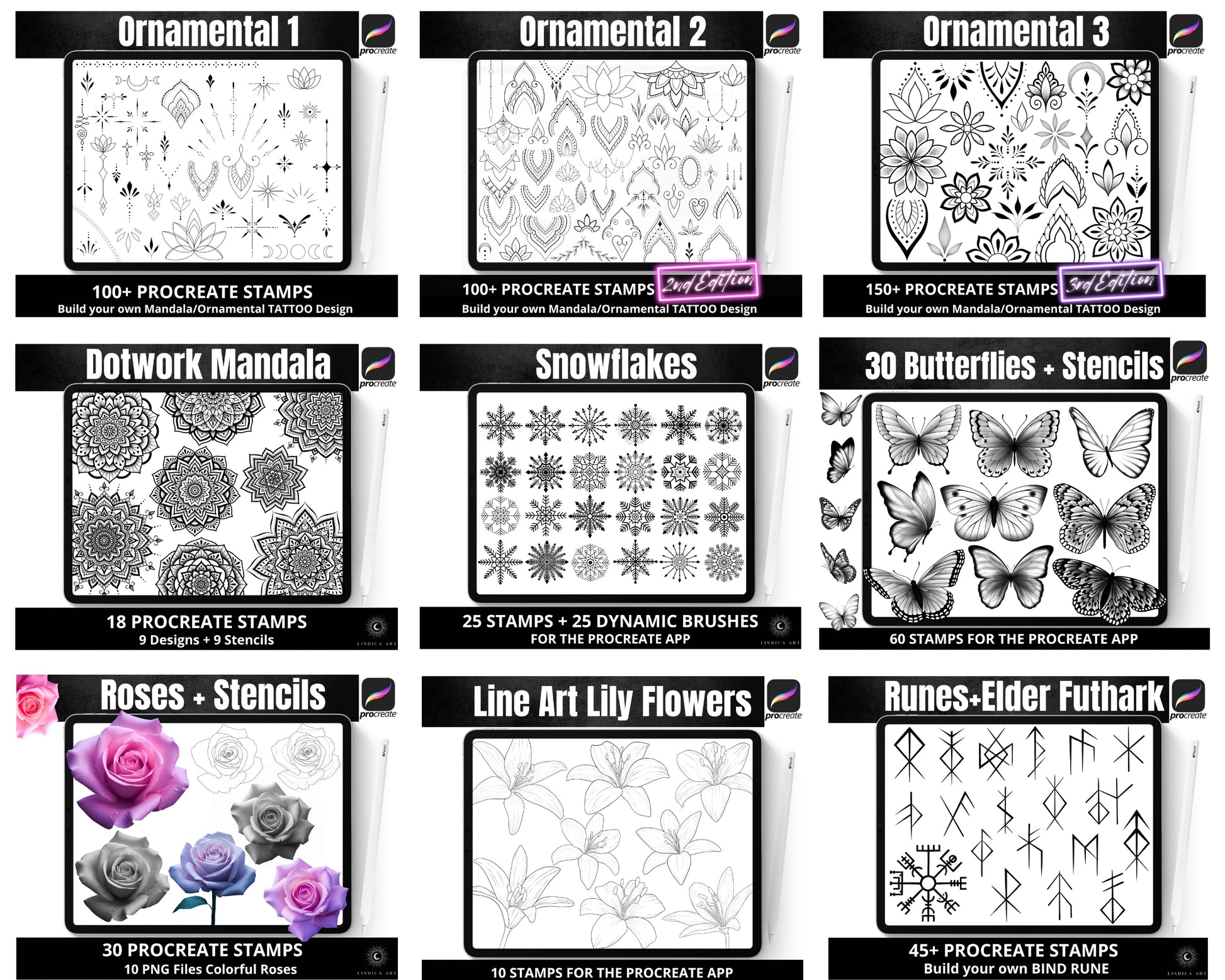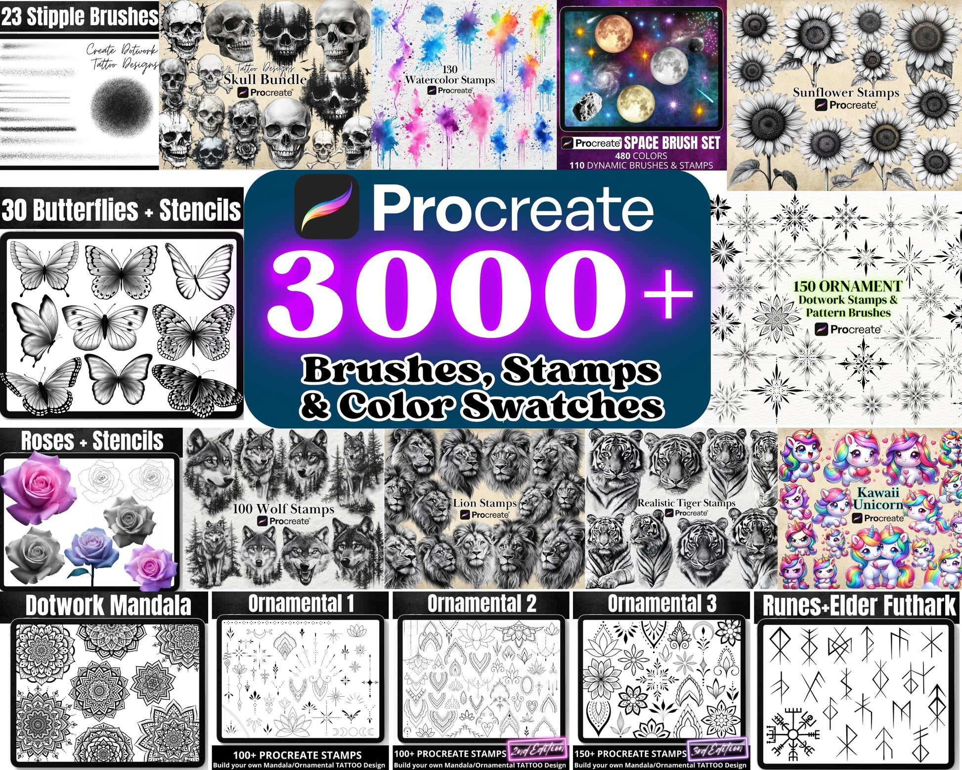 Procreate All in One MEGA BUNDLE with over 2000 Stamps, Dynamic Brushes & Color Palettes!